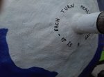 The building of Gaïa itself took less than 3 weeks. From the start, James Frost joined the team and became Txema’s first acolyte. Lisa, Clara, Scott and Kaddi, Jim and Elmar were helping in a thousand ways and especially to draw a beautiful map of the earth on the ball. The children would come to visit from time to time until we brought the ball to the school. We had no holds and found a great help from Citirocksthrough its founder Robert Breyer and Metoliuswho agreed to contribute as a sponsor. Gecko Grips also agreed to make a special price for us and I contacted Mike Behr who was willing to help by giving holds. Everyone wanted to help the success of Gaïa.